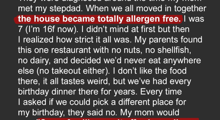 Growing up in a blended family presented its own unique set of challenges, but nothing could have prepared me for the **allergy-induced food prison** I was about to enter. My stepbrother, a cheerful little guy, was diagnosed with a severe dairy allergy around the same time my stepsister, a slightly more reserved girl, learned that she was allergic to all seafood and shellfish. Both diagnoses occurred around the time my mom met my stepdad, and when they decided to move us all in together, the house became an **allergen-free zone**. As a seven-year-old, I didn’t fully grasp the implications, but as the years passed, the strictness of the rules began to weigh heavily on me. My parents, in their quest to ensure everyone’s safety and well-being, discovered a single restaurant that somehow managed to be completely free of nuts, shellfish, and dairy. It was a culinary marvel of sorts, but to my young taste buds, it was a nightmare. We began to have every single birthday dinner there, year after year. The food tasted strange and bland, but whenever I dared to suggest a different venue for my own birthday, I was met with resistance. My mom would often retort with phrases like, “Some families can’t afford any dinner out at all, but sure, let’s all bend over backwards because princess doesn’t like the menu.”