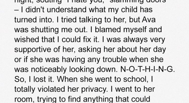 I (40F) have always strived to be a supportive and understanding mother to my daughter, Ava (15F). I made it a point to ask about her day, offer help when she seemed troubled, and generally create a safe and open environment for her to confide in me. That’s why it hit me like a ton of bricks when Ava started exhibiting increasingly erratic and concerning behavior. It started with the **constant running away** from home at night. Then came the shouting matches, the slamming doors, and the **heartbreaking words**: “I hate you!” I simply couldn’t understand what had happened to my sweet, loving child. It was as if she had transformed into a completely different person overnight. I tried talking to her, reasoning with her, pleading with her, but Ava remained stubbornly shut off. She refused to open up, offer explanations, or even acknowledge my presence. Desperate and filled with self-blame, I wished more than anything that I could somehow fix the situation. I racked my brain, replaying every conversation, every interaction, searching for clues or missteps that might have triggered this sudden and drastic change in her behavior. I blamed myself for not being a better mother, for failing to notice the signs, for somehow pushing her away.