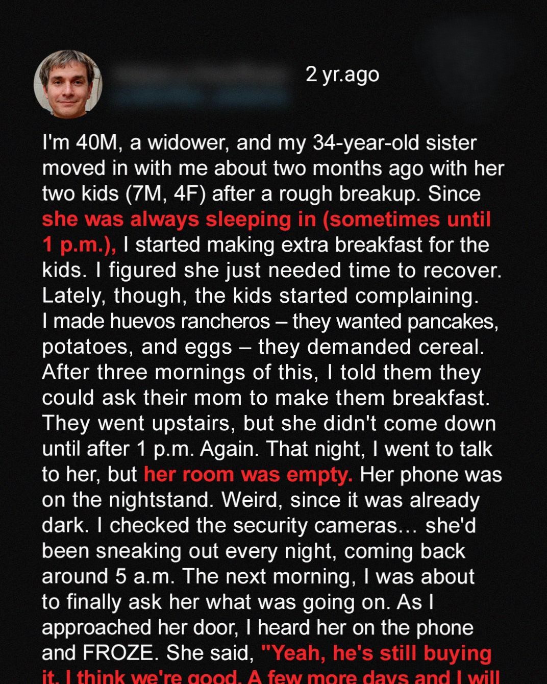 I’m a 40-year-old widower, and life has been… well, let’s just say it’s been a journey. A tough one. About two months ago, my 34-year-old sister, Sarah, found herself in a really difficult situation. She had a pretty nasty breakup with her boyfriend, and suddenly she was without a home and with two young kids to care for: my nephew, a rambunctious 7-year-old boy, and my niece, a sweet and sensitive 4-year-old girl. Naturally, I offered them a place to stay. I mean, what else could I do? They’re family. I have a decent-sized house, plenty of room, and honestly, I thought it would be a good thing for all of us. A chance for her to get back on her feet, and some company for me, because living alone after my wife passed away has been difficult and lonely. I thought this was going to be a really great and meaningful thing. At first, things seemed okay. Sarah was understandably heartbroken and exhausted. She spent a lot of time sleeping, trying to recover from the emotional turmoil of the breakup. I completely understood and didn’t want to push her too much. I wanted to support her and be there for her and the kids. Since she was always sleeping in – sometimes until one in the afternoon – I started making extra breakfast for the kids in the mornings. It seemed like a small way to help, to take some of the burden off her shoulders. I figured she just needed time to heal and recover, and the least I could do was make sure the kids had a good breakfast before starting their days. I wanted to ensure they had something good to start with.
