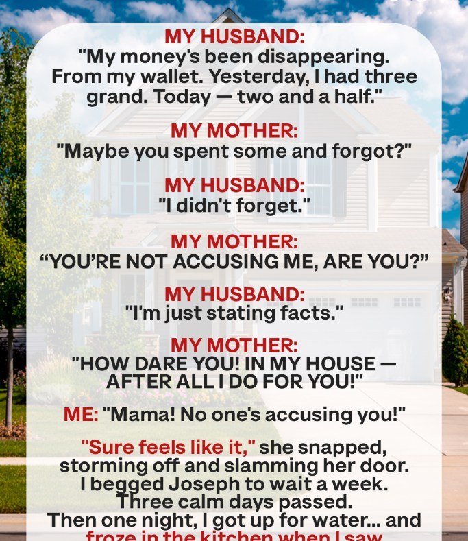 My immediate instinct was to confide in Joseph, my husband. He’s always been the level-headed one, the voice of reason in our often-turbulent household. I laid out the facts, carefully explaining the disappearing money and my growing concern. His initial reaction was one of skepticism, suggesting the possibility of a simple oversight. “Maybe you spent some and forgot?” he offered, his tone laced with a hint of dismissal. But I stood my ground, adamant that I hadn’t. “I didn’t forget,” I insisted, my voice firm, betraying the anxiety that was slowly consuming me. The atmosphere in the room shifted palpably, the air thickening with unspoken tension. My words hung heavy in the silence, laden with implication. Joseph’s expression hardened, his brow furrowing as he processed the weight of my statement. He didn’t say anything, but I could see the question forming in his eyes: If I hadn’t spent the money, then who had?