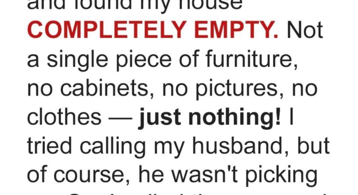I had been away on a business trip for a week, presenting at a huge conference that could potentially make or break my career. I was exhausted but also incredibly excited to finally be heading home to my husband, Mark, and our cozy little house. I had been looking forward to a quiet evening in, maybe ordering some takeout and catching up on our favorite TV shows. As I pulled into the driveway, everything seemed normal. The house looked the same as always, the lawn was neatly mowed, and the curtains were drawn. I unlocked the front door, stepped inside, and that’s when the **horror** began. My heart skipped a beat. An unsettling silence hung in the air, heavier than anything I had ever experienced. Where was the familiar clutter of everyday life? Where was the comforting aroma of home? [ “EVERYTHING. WAS. GONE.” ] The living room was bare, devoid of furniture, rugs, and even the small decorative items I had painstakingly collected over the years. The kitchen was equally desolate, with empty cabinets and countertops. Not even a coffee maker remained. I ran through the house, a growing sense of dread washing over me with each empty room. The bedrooms were stripped bare, no beds, no clothes in the closets, not even a single picture on the walls. It was as if someone had meticulously erased any sign of our existence, leaving behind only empty, echoing spaces.