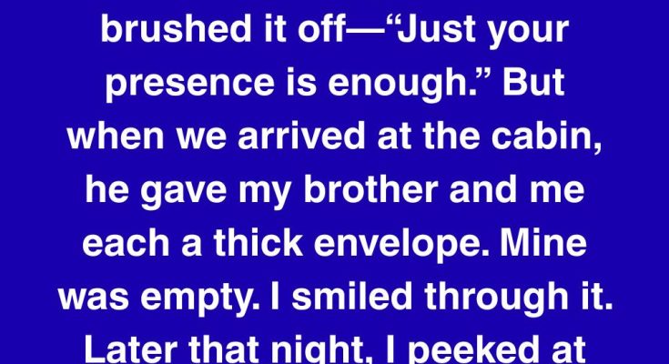 He handed one to Mark and one to me. I tore open mine with anticipation, expecting perhaps a heartfelt letter or a small token of appreciation. But as I peered inside, my heart plummeted. The envelope was completely empty. A wave of confusion washed over me, quickly followed by a stinging sense of hurt and disbelief. I desperately tried to maintain a cheerful facade, forcing a smile as I caught my dad’s gaze.