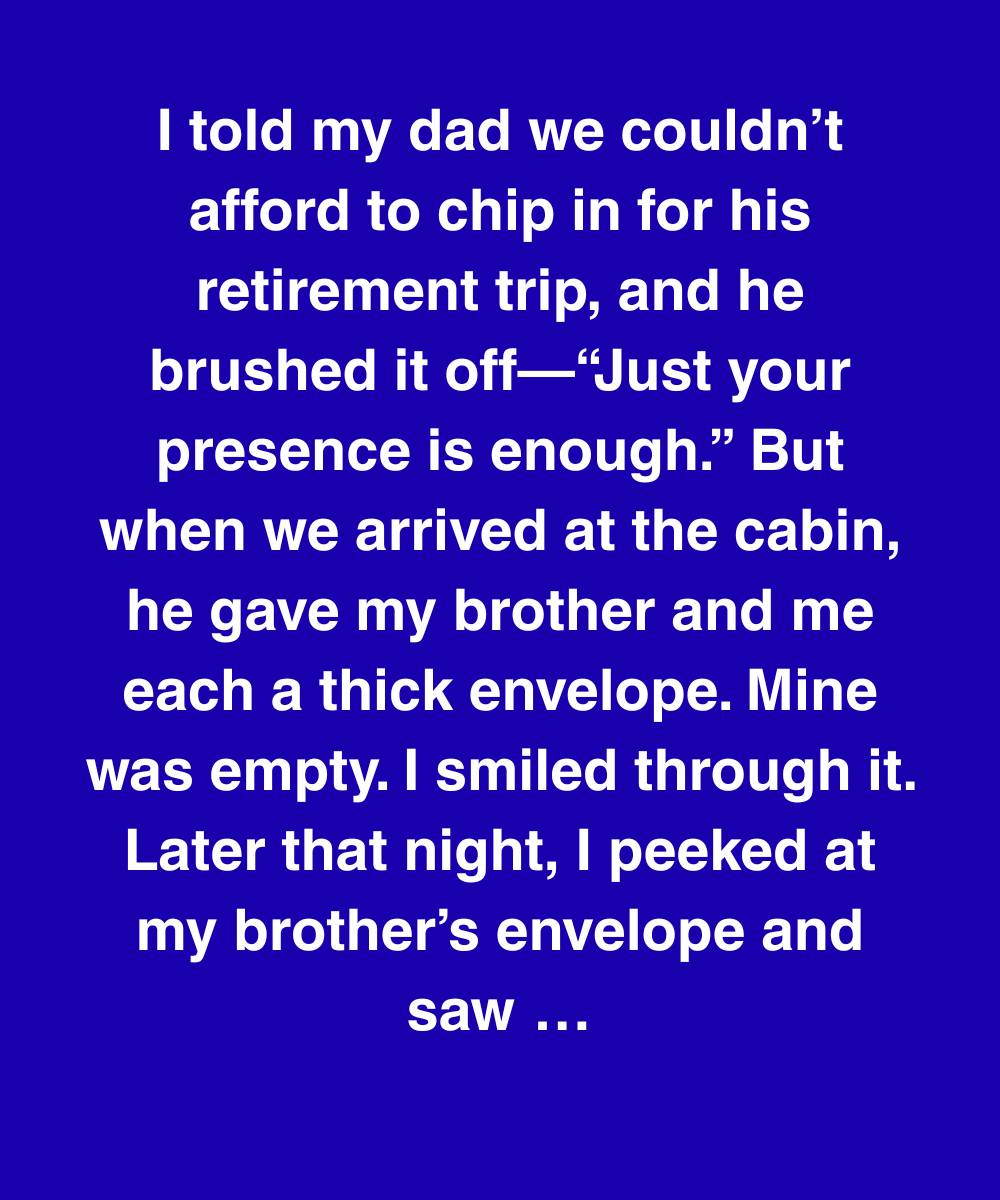 The implications of my dad’s actions were devastating. Was I being punished for my financial struggles? Did he perceive me as less successful than Mark? The idea that my presence wasn’t enough, that I was being subtly excluded, was crushing. I confronted him the next morning, my voice trembling with a mixture of anger and hurt. He looked at me, his eyes filled with an emotion I couldn’t quite decipher, and finally confessed that he had given Mark the money to hold for him, as he didn’t trust himself with large sums of cash on vacation. He’d always had a gambling problem, hidden for years, and feared a relapse. He didn’t want me to know because he was ashamed, not because he didn’t love me.
