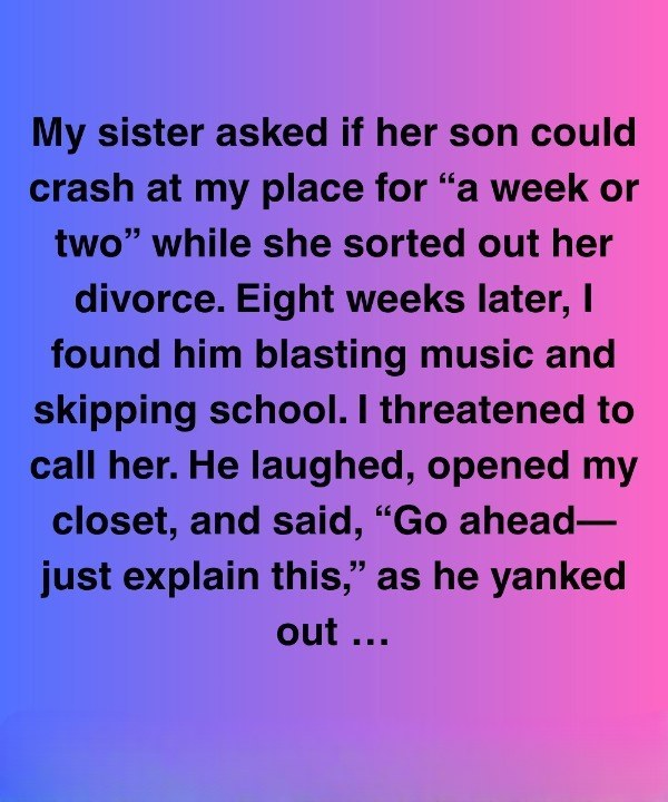 My sister, bless her heart, was going through a messy divorce. She asked if her son, my nephew, could crash at my place for “a week or two” while she navigated the legal labyrinth and found a new place to live. Being the ever-supportive aunt, I readily agreed. I mean, what’s a little inconvenience when family is in need? I pictured myself as the rock in their storm, the steady presence offering a safe haven. Little did I know, I was about to become the epicenter of a family earthquake. The initial week passed without incident. My nephew, let’s call him Mark, was quiet and seemingly well-behaved, mostly keeping to himself in the spare bedroom. I chalked it up to the stress of his parents’ separation and tried to make things as comfortable as possible for him. I cooked his favorite meals, offered a listening ear, and generally tried to be the supportive aunt he needed. Then the second week rolled around, and then the third, and so on. The “week or two” rapidly morphed into a month, then two. I started to notice changes in Mark’s behavior. He began sleeping in later, blasting music at all hours, and I strongly suspected he was skipping school.