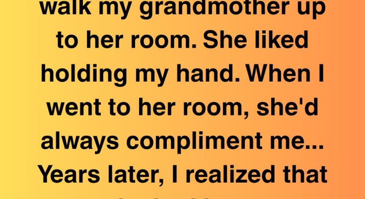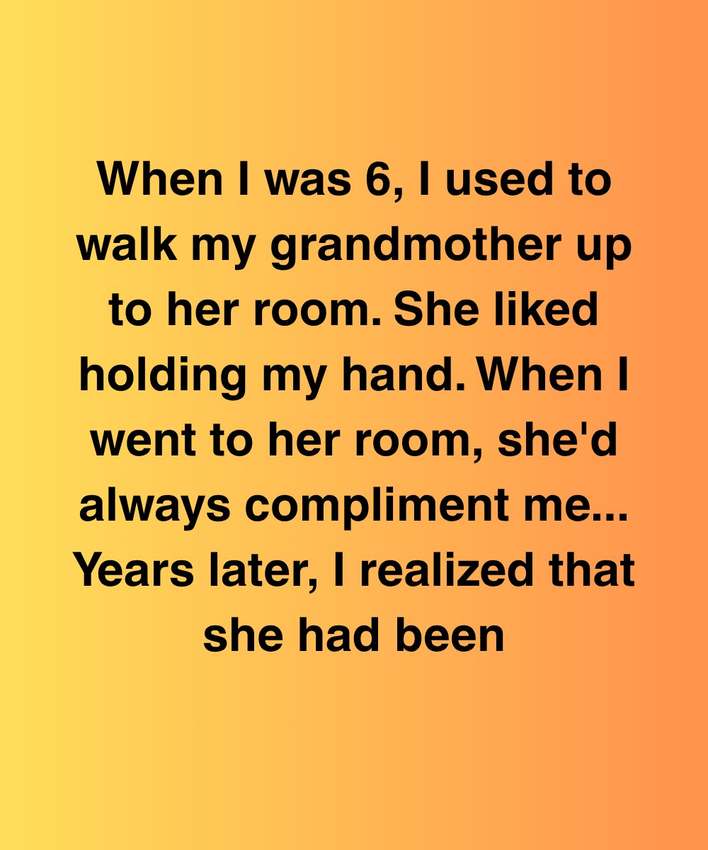 It all started innocently enough. When I was around six years old, my grandmother, bless her heart, started needing a little extra help getting around. Her room was upstairs, and while she was perfectly capable of making the climb herself, she appreciated the company and the steadying hand. So, naturally, being the doting grandson I was, I volunteered myself as her personal escort. Every visit to her house turned into a ritual: I’d bound up the stairs, eagerly anticipating the moment I could offer my assistance, feeling important and grown-up beyond my years. She’d always have the warmest smile ready for me, her eyes twinkling with a mixture of gratitude and something I couldn’t quite decipher back then. She loved holding my hand, her frail fingers wrapping around mine with surprising strength. I felt like a knight in shining armor, protecting her from the perils of the staircase. And then came the compliments. Oh, the compliments! Every single time, without fail, she’d remark on how much I’d grown, how handsome I was becoming, how much I reminded her of someone special. It was the **someone special** comment that would eventually unravel this bizarre truth. She would always emphasize how proud she was of me, and how happy she was to have such a kind and thoughtful grandson. These words were like golden showers, filling my young heart with pride and a sense of belonging. I relished those moments, soaking up her adoration like a thirsty plant drinks in the rain. It became a defining part of our relationship, a cherished memory that I would carry with me for years to come. I never questioned the sincerity of her words, never doubted the genuine affection behind her gaze. It was just Grandma being Grandma, showering her grandson with love. Or so I thought. Years passed. I grew older, taller, and my visits to Grandma became less frequent as life’s demands tugged me in different directions. But the memory of those hand-holding walks and the constant stream of compliments remained etched in my mind, a warm and fuzzy reminder of a simpler time.