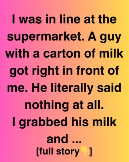 Without thinking, I reached out and grabbed the carton of milk. Yes, I did. I grabbed HIS milk. The look on his face was a mix of shock and confusion. He probably couldn’t believe that I was actually doing this. It was a completely irrational act, I know that now, but in the heat of the moment, it felt like the only thing I could do. I had his milk in my hand, and I was trying to figure out what to do with it. Should I just hand it back and tell him off? Should I throw it at him? Should I chug the whole thing right there? I had options, but none of them felt quite right. The tension in the air was palpable. Everyone in line was staring at us, wondering what was going to happen next. The cashier even stopped scanning the items and was watching with wide eyes. I was completely mortified, but at the same time, I felt a strange sense of satisfaction. Like I was finally standing up for myself and for all the other people who get cut in line every day.