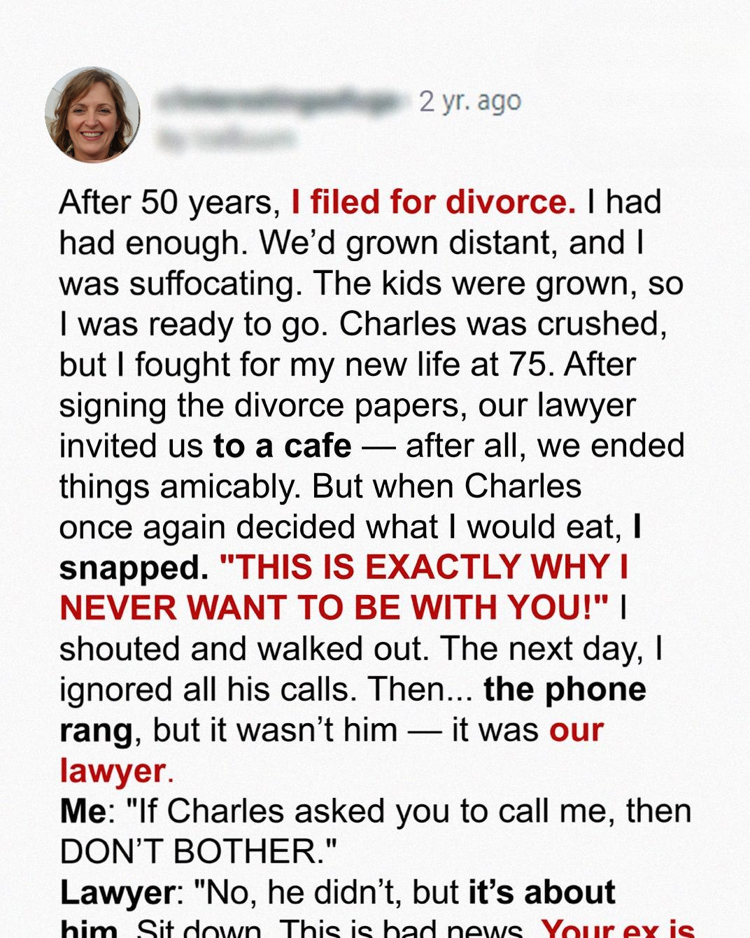 I Divorced Him After 50 Years, Then Tragedy Struck