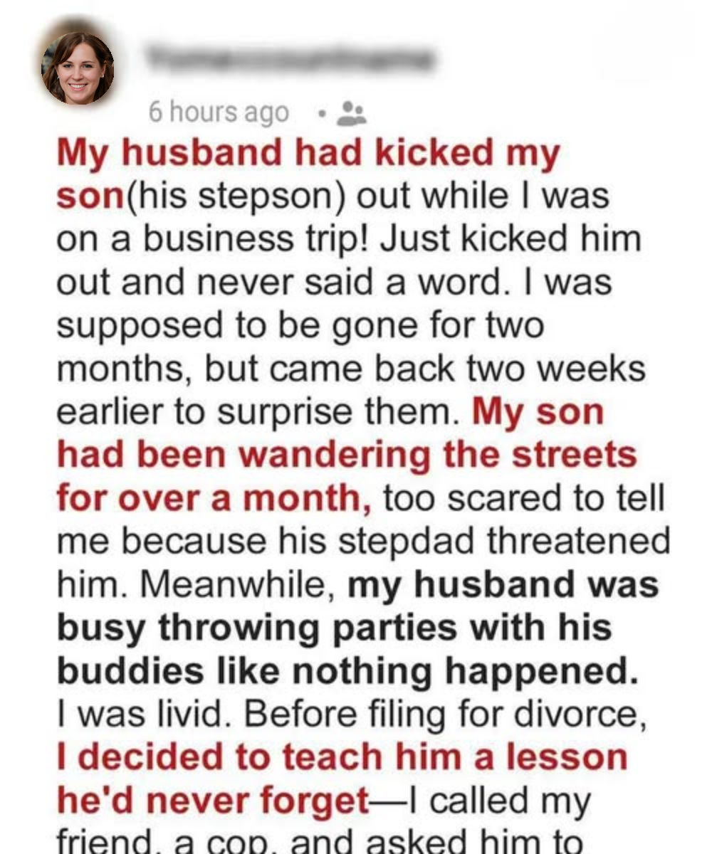 I had always believed in the sanctity of family, in the unbreakable bond between a husband, a wife, and their children. My son, Michael, was the light of my life. When I married David, I genuinely thought I was bringing him into a loving home, a place where he would feel safe, secure, and cherished. David had always presented himself as a kind, understanding man, and he seemed to genuinely care for Michael. That’s why, when I received a business trip that would take me away for two months, I felt relatively at ease leaving Michael in his care. Of course, I missed them terribly, and every day felt like an eternity. I called often, but David always had an excuse for why Michael wasn’t available – he was at a friend’s house, studying at the library, or simply out for a walk. I didn’t think much of it at the time; teenagers, after all, often crave independence and time away from their parents. I should have known better. I should have seen the warning signs. I wanted to **surprise** them, to cut my trip short and come home two weeks early. I imagined the joy on their faces, the warm embrace of my husband, and the excited chatter of my son as we caught up on lost time. Little did I know, the surprise would be all mine, and it would be a nightmare I would never forget.