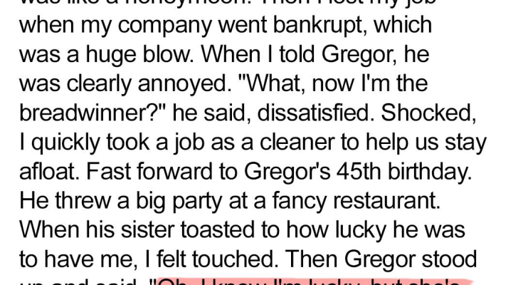 Fast forward to Gregor’s 45th birthday. He decided to throw a big, lavish party at a fancy restaurant, inviting all of his friends, family, and colleagues. I was surprised by his extravagance, given our financial situation, but I assumed he was trying to put on a brave face and maintain appearances. I helped him plan the party, meticulously arranging every detail to ensure that it would be a memorable occasion. I even splurged on a new dress, hoping to feel confident and beautiful amidst the crowd of well-dressed guests. As the party got underway, I tried my best to mingle and make conversation, but I couldn’t shake the feeling that I didn’t belong. I felt like an imposter, a cleaner in a room full of successful professionals. I longed to escape and retreat to the safety of my own home, but I knew I had to stay and support Gregor.