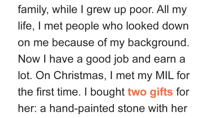 My husband comes from a very wealthy family, a world away from the modest background I grew up in. All my life, I’ve encountered people who subtly, or not so subtly, looked down on me because of my upbringing. It’s a constant battle to prove myself, to show that I’m just as capable and worthy as anyone else, regardless of where I started. Now that I have a good job and earn a respectable income, I find myself still grappling with those old insecurities. I worry about being judged, about not fitting in, about being seen as less than. This Christmas was particularly nerve-wracking because it was the first time I was meeting my mother-in-law. I wanted to make a good impression, to show her that I was a worthy partner for her son. I wanted her to see past my background and appreciate me for who I am. I spent weeks agonizing over what to get her for Christmas. I wanted something thoughtful and personal, but also something that reflected my success. I finally decided on two gifts: a beautifully hand-painted stone with a depiction of her beloved cat, and a Gucci bag, a very expensive and luxurious one. I poured over reviews and talked to friends to ensure I made the right choice. In my mind this was a gift that would make her happy and show my worth.