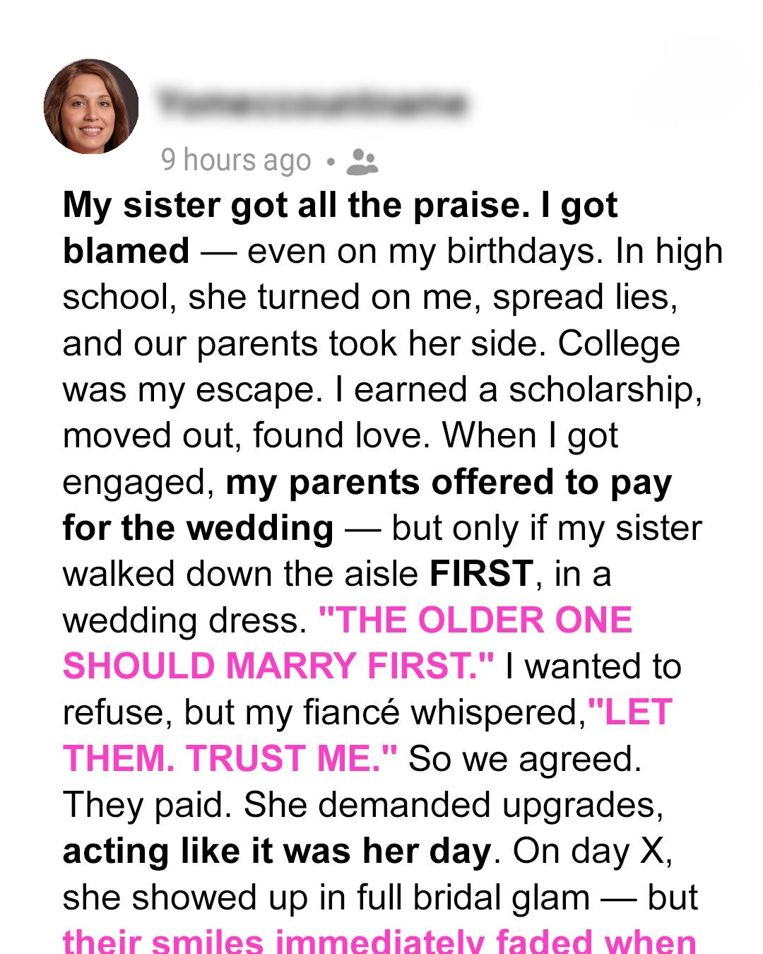 But as she walked down the aisle, a hush fell over the crowd. My fiancé stepped forward and announced that this was not a real wedding, but a ceremony to publicly acknowledge my sister’s **narcissistic behavior** and manipulation. He then produced **evidence** of her lies and the pain she had inflicted on me throughout the years. The smiles on my parents’ faces immediately faded, replaced by shock and disbelief. It was a moment of reckoning, a chance for them to finally see the truth. My sister stood there, speechless and humiliated. My fiancé then got down on one knee, proposed *again*, this time making it clear that this was *my* day, and that I was the only bride he saw. I said yes, tears streaming down my face, finally free from the shadow that had haunted me for so long. Let’s just say, things changed drastically after that day.