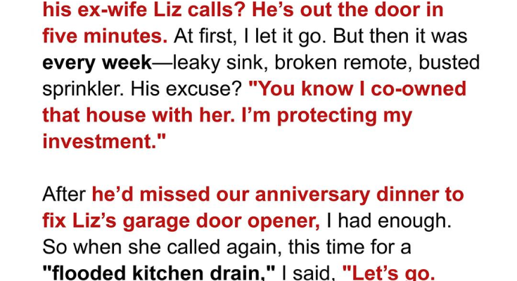 My husband, Mark, isn’t exactly Mr. Fix-It around our house. I’ve been after him for months to hang a shelf in the living room, and the dripping faucet in the bathroom? Forget about it. But the moment his ex-wife, Liz, calls with some sort of household emergency, he’s out the door faster than a speeding bullet. At first, I tried to be understanding. They had shared a life together, after all, and I didn’t want to be the jealous wife. But then it became a weekly occurrence – a leaky sink, a broken remote, a busted sprinkler system. Each time, he’d offer the same tired excuse: “You know I co-owned that house with her. I’m protecting my investment.” It was starting to wear thin, especially since he never seemed to find the time to protect *my* investment, our home, with the same fervor. I started to feel like Liz’s property manager, and not his wife. The resentment was slowly building, brick by painful brick. I told myself I was probably just being insecure, but the pit in my stomach told a different story.