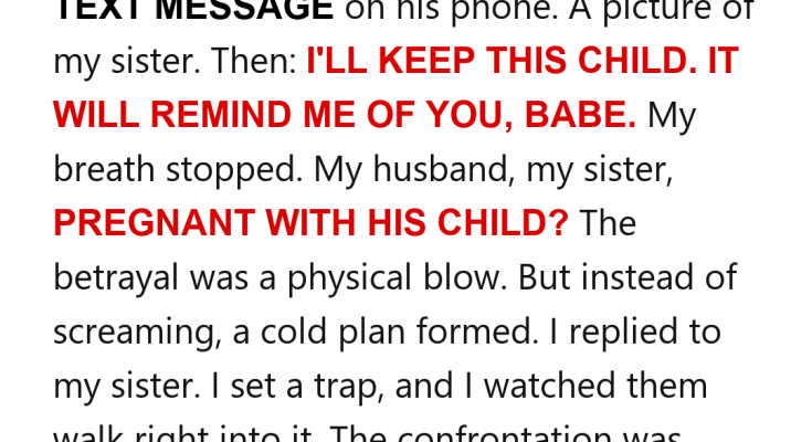 Then his phone buzzed. It sat on the counter beside me. I picked it up to hand it to him. The screen was still lit. A photo preview. My sister. **MY YOUNGER SISTER**. Then a message appeared. “No. I’ll keep this child. It will remind me of you, babe.” I felt my breath stop. Child. Babe. My husband was sleeping with my sister. And she was PREGNANT. The world seemed to tilt on its axis, the floor dissolving beneath my feet. The blood drained from my face, leaving me cold and numb. I couldn’t breathe, couldn’t think, couldn’t process the enormity of what I had just witnessed. It was as if a bomb had exploded in my heart, leaving behind only shards of pain and disbelief. My husband, the man I had vowed to spend my life with, the man I trusted implicitly, had betrayed me in the most unimaginable way possible. With my own sister, no less. The sister I had always loved, always supported, always confided in. The two people who were supposed to be closest to me in the world had conspired to destroy me. How could they do this to me? How could they be so cruel? The questions swirled in my mind, unanswered, unanswerable.