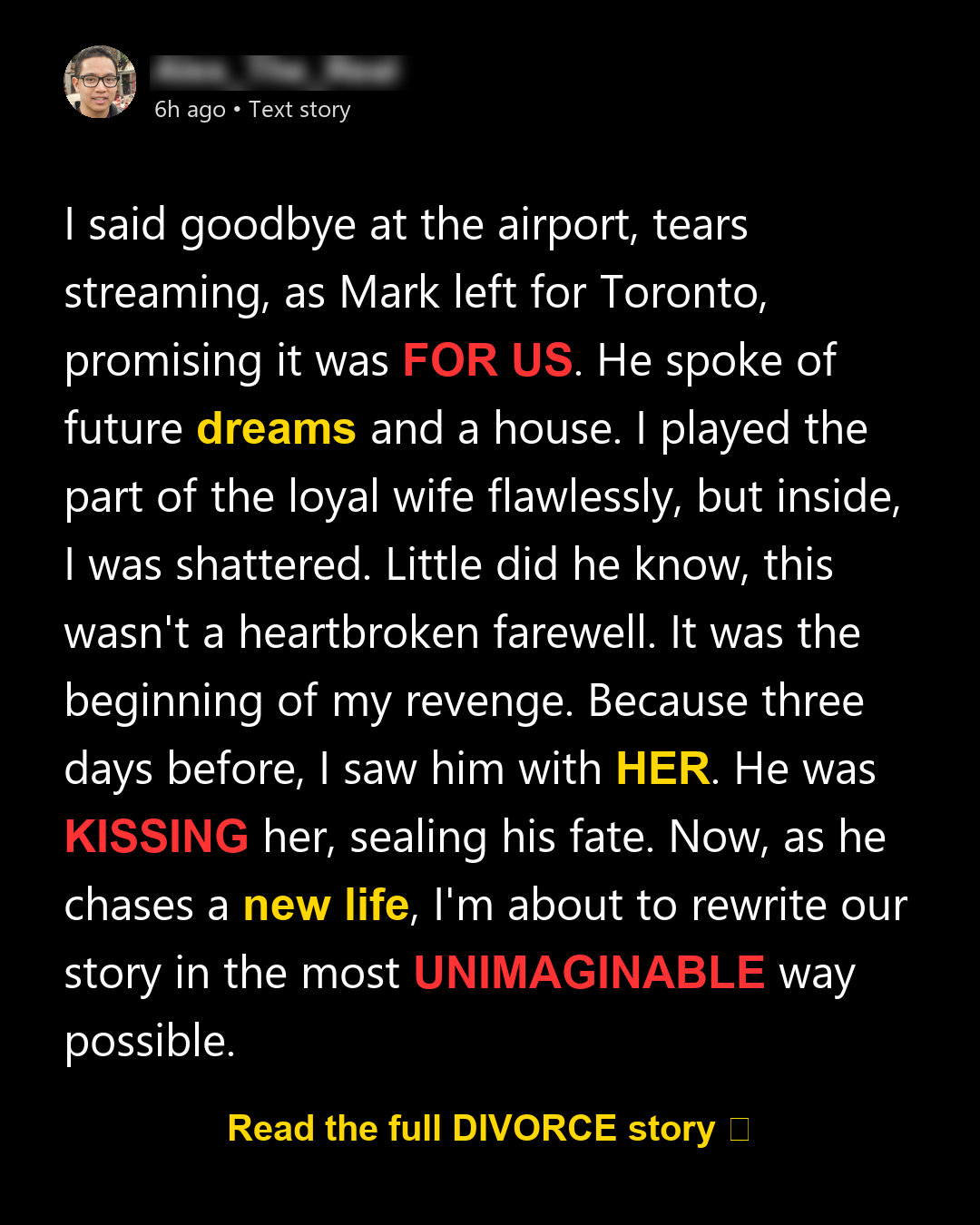 At the airport, I gripped my husband’s hand so hard my knuckles ached. Travelers rushed past with rolling bags and paper cups of coffee, but I stood there in the noise, crying like something had broken forever. Mark kept brushing tears off my cheeks, repeating the same promises—how the two-year assignment in Toronto would pass quickly, how it was “for us,” how we’d finally afford a down payment on a house in a good neighborhood once he returned. I nodded like I believed every word. I played the role flawlessly. The loyal wife. The brave goodbye. The woman who would wait. When his boarding group was called, he kissed my forehead, told me to stay strong, and disappeared through security without turning back. In the Uber home, the driver glanced at me in the mirror and tried to offer comfort. “A man who loves you always comes back,” he said. I watched Chicago slide by—Lincoln Park brick buildings, twinkling lights, sidewalks I knew by heart—and almost laughed at how wrong he was. Because I wasn’t heading home to fall apart. I was heading home to reclaim my life. The second I stepped into our condo, the quiet felt different. His slippers sat by the door. His jacket hook was empty. A trace of his cologne lingered in the air—faint, confident, irritating.