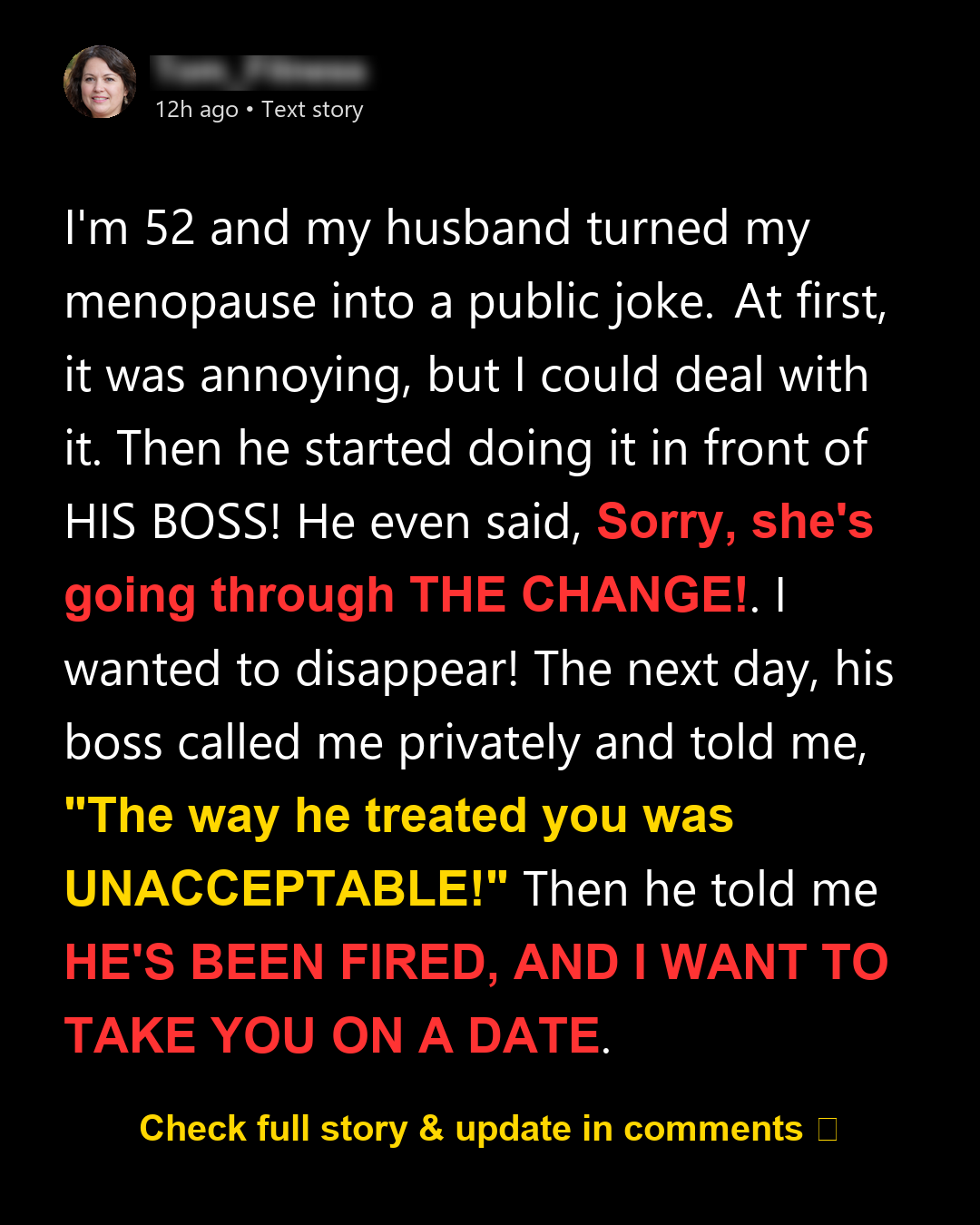 I’m 52 years old and have been married for 27 years. Yes, I am going through menopause. I wasn’t expecting special treatment, but I certainly wasn’t expecting my **OWN HUSBAND** to turn it into a running joke. It started innocently enough, or so I thought. Little “jokes” that he thought were hilarious. He would say things like, “Careful, don’t trigger a hot flash!” or “She forgot again — blame the hormones,” and even the classic, “Menopause brain strikes!” He would laugh as if it made his comments acceptable. Initially, these remarks were confined to the privacy of our home, but soon they began to creep into our social life, during dinners, BBQs, and when we had friends over.