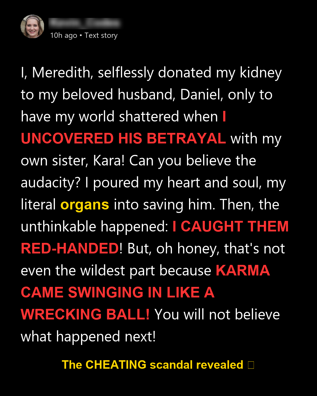 But that isn’t even the twist. I learned a few months later that, due to a previously undetected condition, Daniel’s body was already rejecting my kidney. The affair was just a symptom. He needed another transplant immediately. And Kara? SHE WAS A PERFECT MATCH.