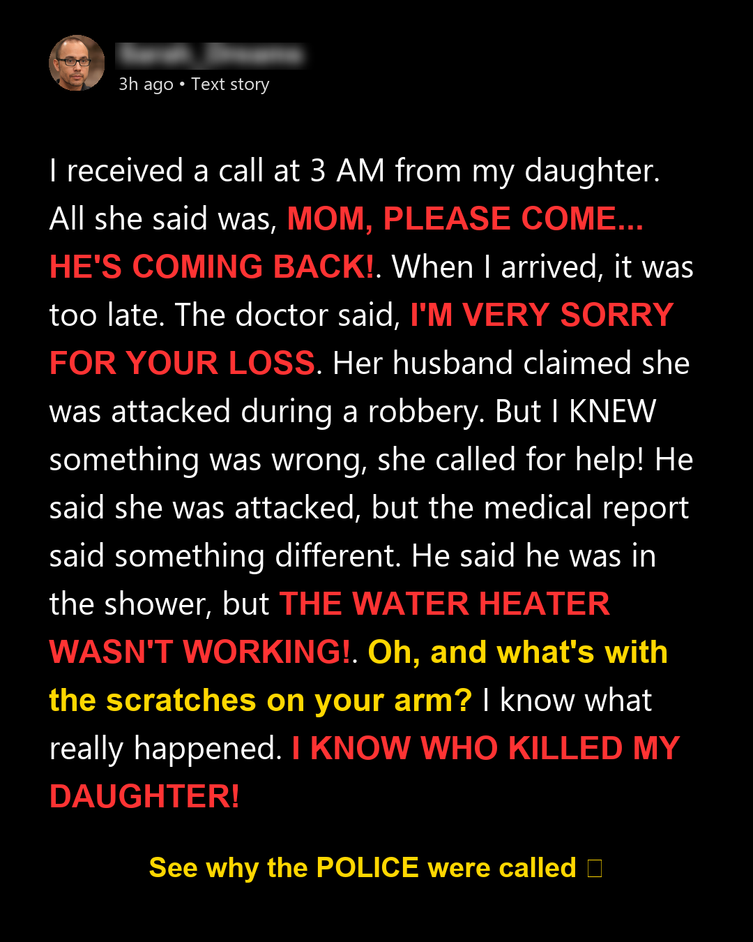 At three in the morning, my phone rang. I knew, even before answering, that something was terribly wrong. My daughter’s voice came through in broken fragments—panicked and barely audible. “Mom… please come now… he’s coming back… I’m scared.” That was all she managed to say before the line went dead. I didn’t ask questions, didn’t properly grab a coat. I just left, my heart pounding with dread. I was already too late. When I reached the hospital, a doctor waited for me in the hallway. He avoided my eyes. Without a word, he gently pulled a sheet over my daughter’s face and spoke in a voice practiced for tragedy. “I’m very sorry for your loss.”