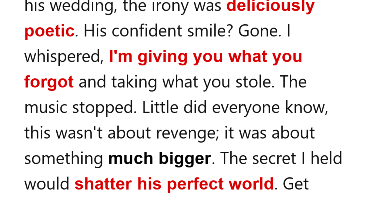 Heads turned. Murmurs spread. A phone lifted. Mason noticed me during his vows. I saw the exact instant his composure cracked—like ice giving way beneath a boot. He whispered to the officiant, then walked down the aisle wearing that practiced smile he reserved for boardrooms. When he reached me, his voice dropped into a private threat. “What are you doing here?” he hissed. I met his stare. “Giving you what you forgot,” I whispered, “and taking what you stole.”