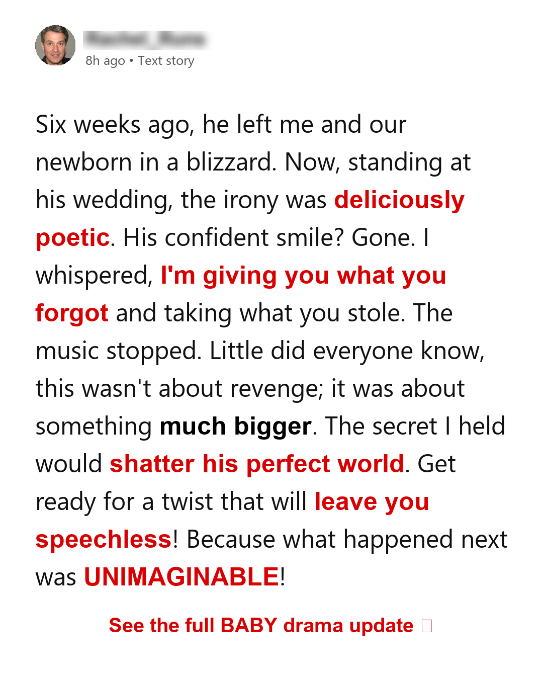 Six weeks after **Mason** forced me and our newborn into a blinding snowstorm, his final words still echoed in my head: “You’ll be fine. You always survive.” Now I stood at the rear of his dazzling wedding reception, my baby asleep against my chest and a sealed envelope heating my palm like a live coal. The moment he noticed me, his confident smile fractured. “What are you doing here?” he snarled. I leaned in and murmured, “Giving you what you forgot… and taking what you stole.” Then the music cut out. Six weeks earlier, Mason Hale had shoved me out of our mountain rental with only a diaper bag and my newborn wrapped in my coat. Snow stung my skin like needles. He showed no remorse—only irritation, as if I’d dirtied his space. “You’ll be fine,” he said flatly. “You always survive.” Then he slammed the door and left the storm to finish the job.