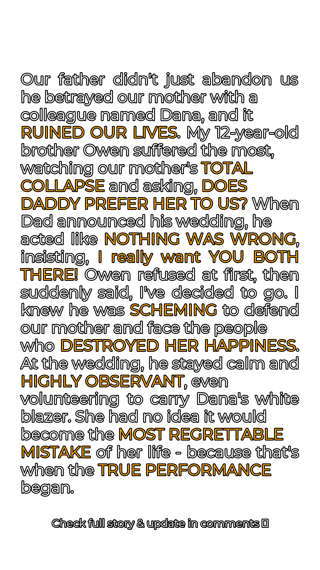 The words hit us like a physical blow: “I’m leaving.” Not just leaving the house for a business trip, but leaving us. Leaving our mother. Leaving our family for another woman, Dana, a colleague from work. It wasn’t just the act of leaving; it was the casual cruelty with which it was delivered, as if he were discussing the weather. The air in the room seemed to thicken, the silence amplifying the enormity of his betrayal. The look on my mother’s face… a mixture of disbelief, pain, and a dawning horror that would haunt us for years to come. Owen, my twelve-year-old brother, was particularly devastated. He idolized our father. To see his hero crumble, to witness our mother’s subsequent descent into despair, was unbearable for him. He would sit for hours, staring blankly at the television, his small frame trembling. The question he finally choked out, “Does Daddy prefer her to us?” echoed in my nightmares for months. It was a question I couldn’t answer, a question that exposed the raw, gaping wound our father had inflicted.