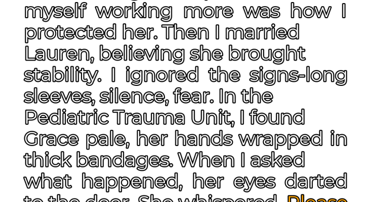 Then Lauren came into the picture, promising stability, a fresh start. I was so eager to believe, so desperate for a semblance of normalcy, that I willfully ignored the red flags. The way Lauren always wore long sleeves, even on warm days. The strained silence that filled the house whenever I wasn’t there. The way Grace flinched whenever Lauren touched her. I saw them, but I dismissed them. I told myself I was being paranoid, that I just wanted to protect my daughter too much.