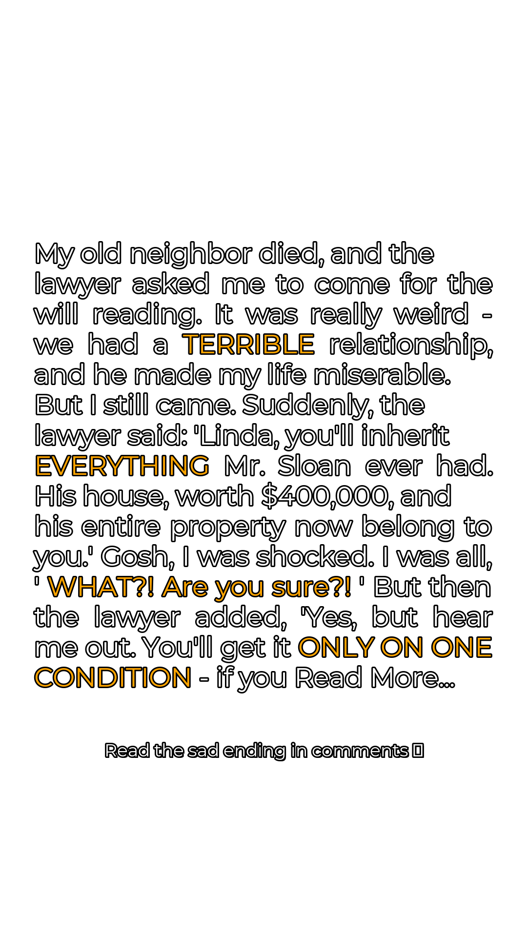 As the lawyer finished listing the assets, he paused, a serious expression on his face. “However,” he said, his voice dropping slightly, “there is a condition attached to this inheritance.” A condition? My heart sank. I knew it was too good to be true. There had to be a catch. Mr. Sloan wouldn’t just hand over his fortune without some sort of twisted game or final act of spite. The air in the room seemed to thicken with anticipation as everyone waited to hear what the condition was.