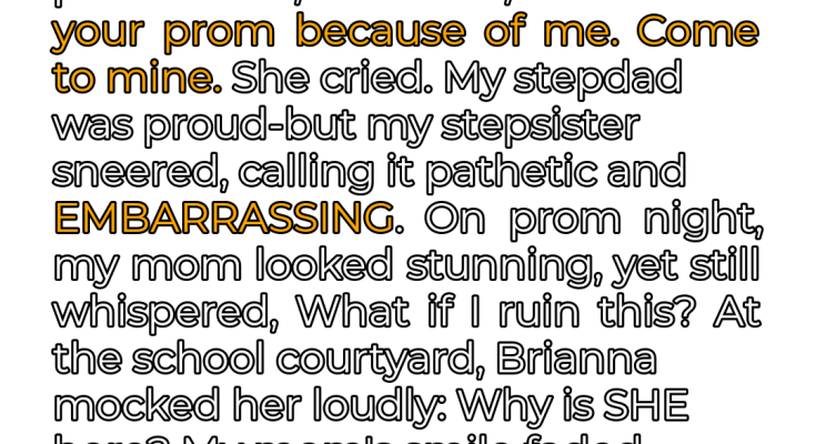 However, the saccharine moment was instantly soured by my stepsister, Brianna. With a sneer that could curdle milk, she called the whole idea “pathetic” and **EMBARRASSING**. Her words stung, but I brushed them off, determined to make this night unforgettable for my mom. We spent hours getting ready together. My mom looked absolutely radiant in her dress. Yet, despite her stunning appearance, insecurity gnawed at her. She kept whispering, “What if I ruin this?” I reassured her, telling her she deserved this night more than anyone.