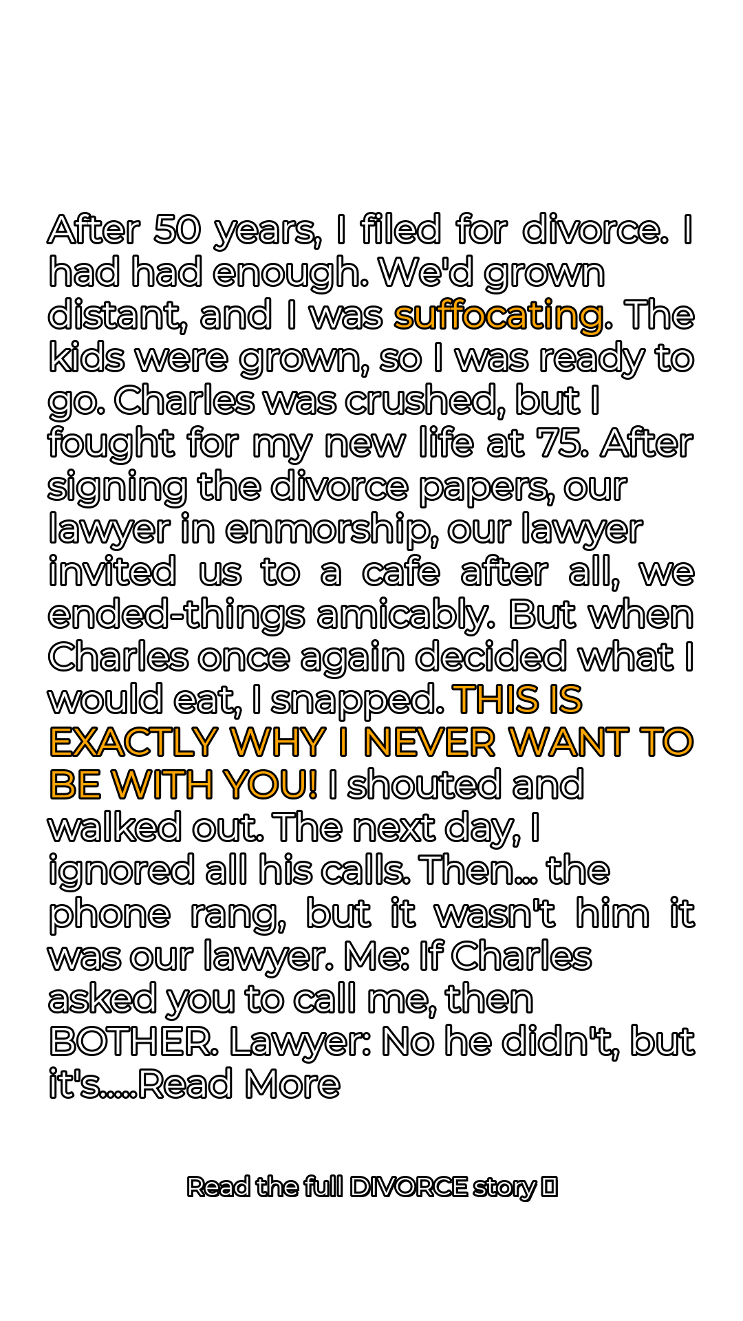 After fifty long years of marriage, Sarah finally reached her breaking point. The years had eroded the vibrant connection she once shared with Charles, leaving behind a hollow echo of what was. She felt suffocated, her spirit slowly withering under the weight of routine and unfulfilled desires. The children were grown, forging their own paths, and Sarah realized she deserved a chance at happiness, at rediscovering herself after decades of self-sacrifice. Charles was predictably devastated when Sarah announced her decision. He couldn’t understand why she would throw away a lifetime together. But Sarah was resolute. She engaged a lawyer, navigated the painful legal process, and finally, at the age of seventy-five, she signed the divorce papers, determined to embrace her newfound freedom. After the signing, their lawyer, a kind man named Mr. Henderson, suggested they all go to a small cafe nearby. He hoped to provide a neutral space where they could end things amicably, without further conflict.