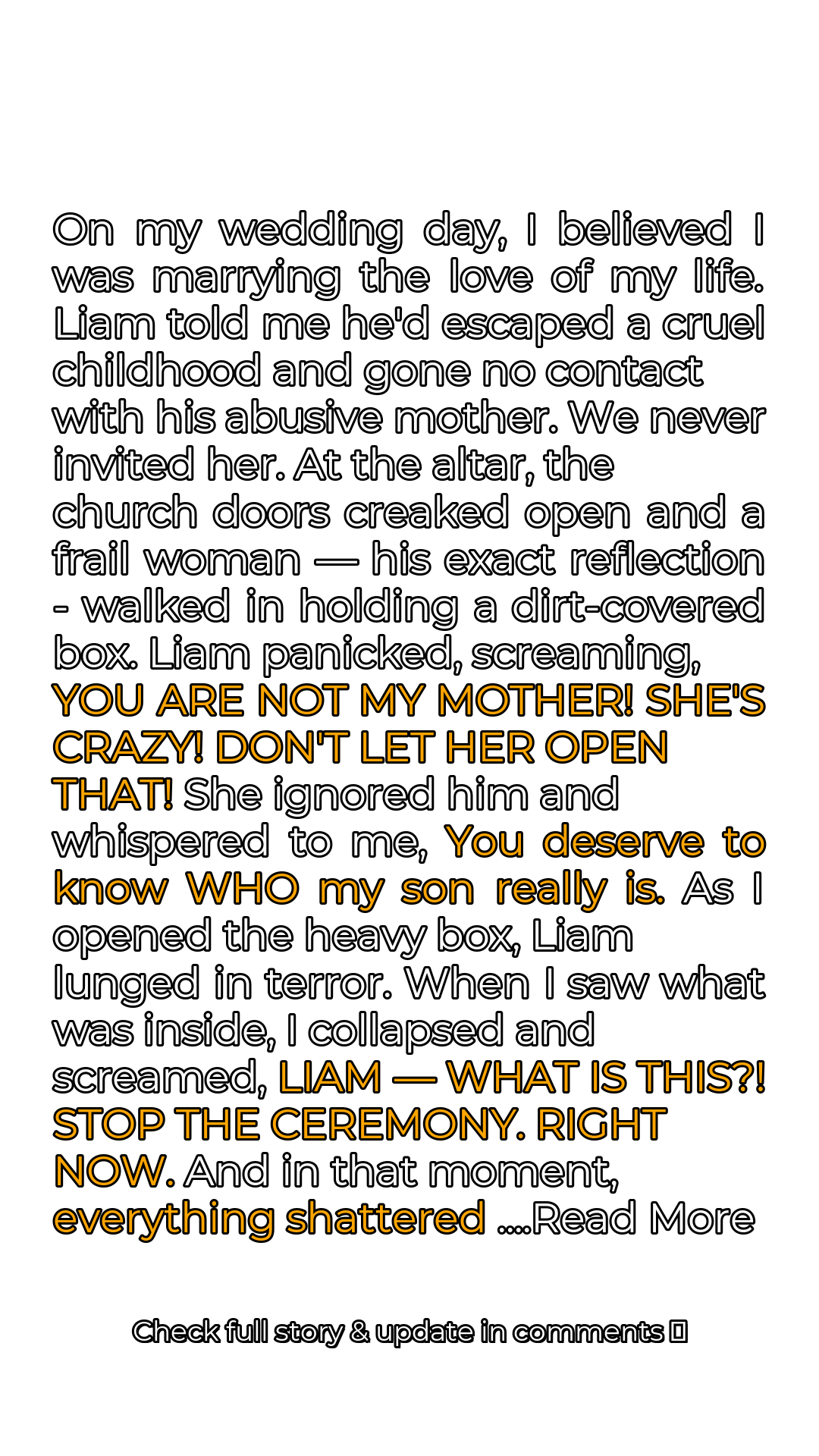 The figure was Liam’s ‘abusive’ mother. Except, she didn’t look abusive. She looked loving, doting. And in her arms, she held a baby. Another baby. Liam’s **TWIN BROTHER**. A brother he had never mentioned. A brother who was missing in all the other photos. I looked up at Liam, my eyes filled with horror and betrayal. [“LIAM — WHAT IS THIS?! STOP THE CEREMONY. RIGHT NOW.”] My voice echoed through the silent church. In that moment, I realized with horror… Liam had lied about everything.