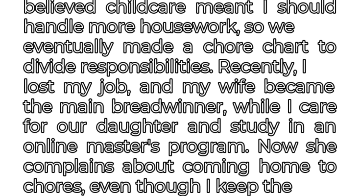 However, the chore chart that had once been our savior now became a battleground once again. My wife started complaining about coming home to chores, even though I was meticulously maintaining the house, keeping it cleaner than ever before. I reminded her that this was the same workload I had handled for years, without a word of complaint. But she insisted it was different now, that it was unfair for her to have to work all day and then come home to a pile of chores.