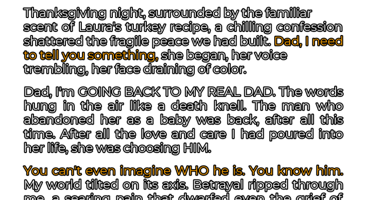 “Dad… I need to tell you something.” Her voice was trembling. She looked terrified. “Dad, I’m GOING BACK TO MY REAL DAD. You can’t even imagine WHO he is. You know him.”
