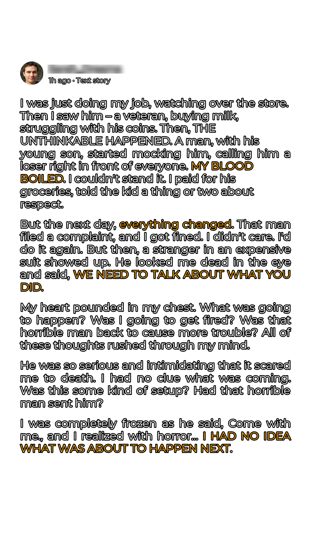He wore an expensive suit, was clean-shaven, and had polished leather shoes. His expression was deadly serious. “Do we know each other, sir?” I asked. “We need to talk about what you did to this veteran yesterday.” I was so stunned I could not find words.
