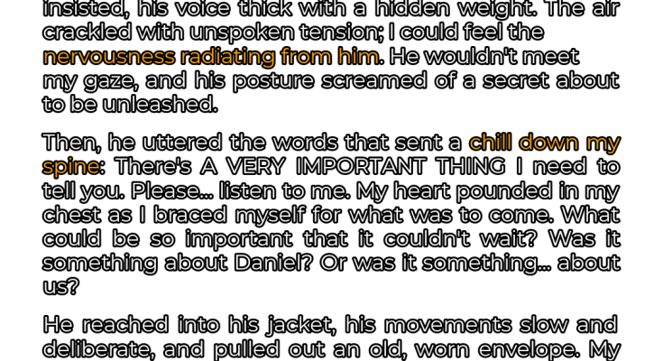 He looked pale, as if sleep had eluded him for days. Nervousness showed in his posture, and he wouldn’t meet my eyes. Then, in a low voice, he said: “There’s A VERY IMPORTANT THING I need to tell you. Please… listen to me.” Before I could reply, he drew something from his jacket pocket — an old, worn envelope WITH MY NAME ON IT. ⬇️⬇️⬇️