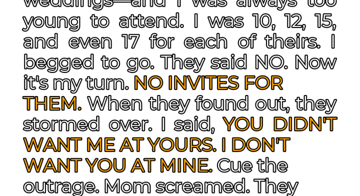 Finally, feeling cornered, I offered a conditional invitation: they could come, but only if they each publicly acknowledged, during the reception, the pain their past decisions had caused me, and vowed to never exclude anyone again based on age. The silence that followed was deafening. They looked at each other, their faces a mask of disbelief and indignation. I had called their bluff, exposing the hypocrisy that had been simmering beneath the surface for so long. In that moment, I realized with horror… [“THEY NEVER TRULY UNDERSTOOD THE PAIN THEY CAUSED”].
