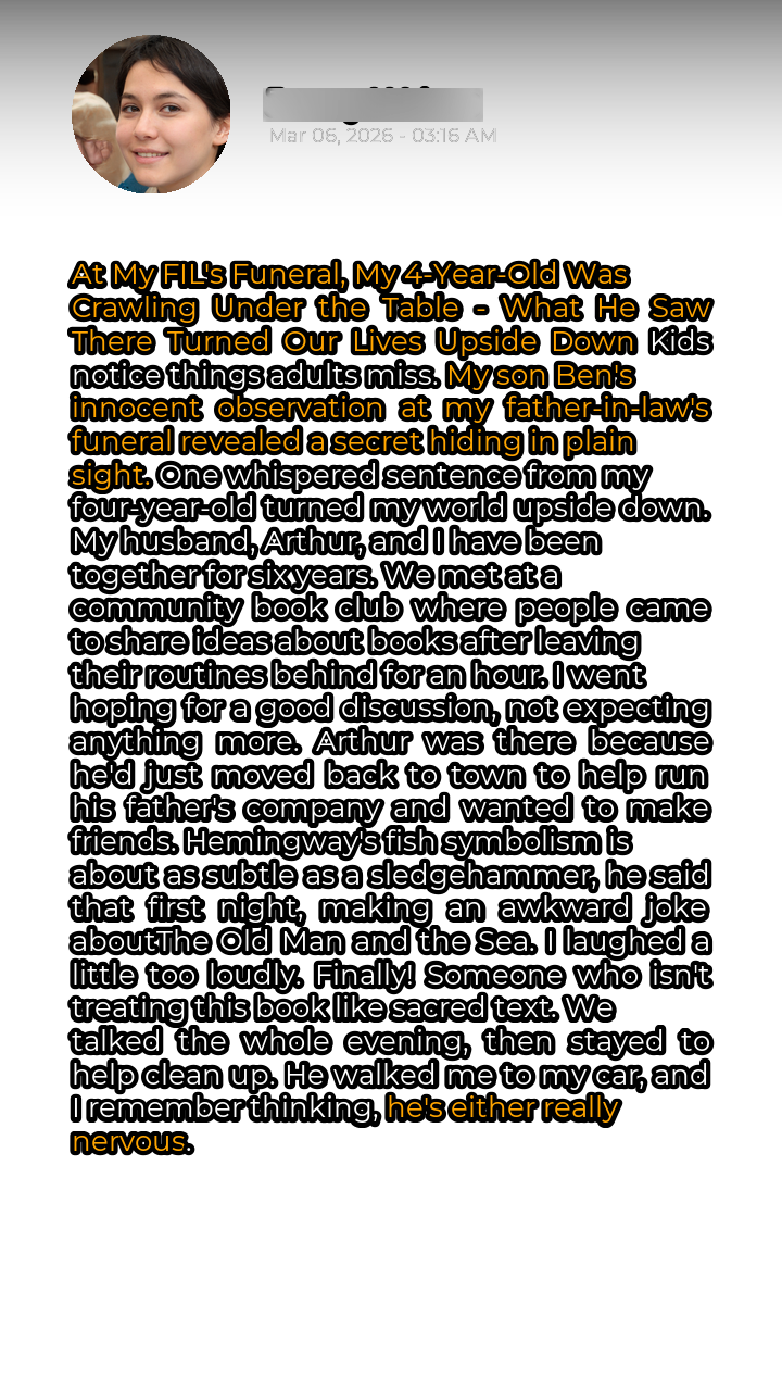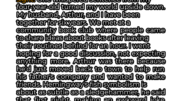 The weight of grief hung heavy in the air, thick and suffocating like a shroud. At my father-in-law’s funeral, the somber atmosphere pressed down on us, each breath a reminder of the profound loss we were experiencing. My husband, Arthur, stood beside me, his face etched with a pain that mirrored my own. We had been together for six wonderful years, a love story that began in the most unexpected of places: a community book club. I had sought refuge in the book club, a haven from the mundane routines of daily life. Arthur, recently returned to town to assist his father with the family business, was searching for connection, for a sense of belonging. Our first encounter was marked by an awkward joke about Hemingway, a shared moment of levity amidst the weighty discussions. “Hemingway’s fish symbolism is about as subtle as a sledgehammer,” he had quipped, and I had found myself laughing a little too enthusiastically, drawn to his dry wit and genuine warmth.
