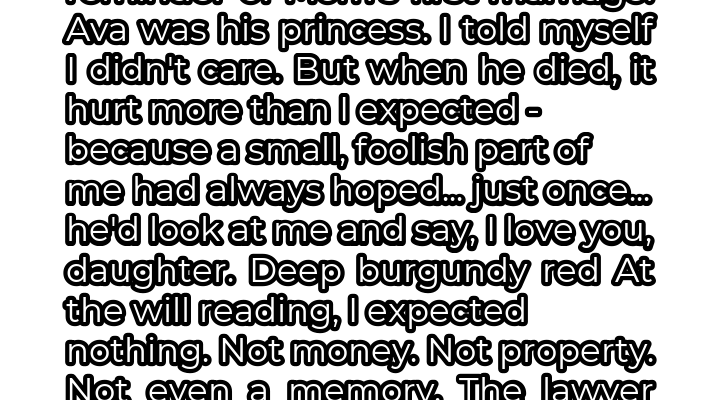 “To Ava, my beloved daughter, I leave⦔ My heart sank like a stone. Of course. Everything would go to Ava, his rightful heir, his true child. And to my wife, my mother, a lifetime of security and comfort. I closed my eyes, fighting back the tears that threatened to spill. It was over. Just as I had always expected. But even in expecting it, the pain was a sharp, twisting knife.