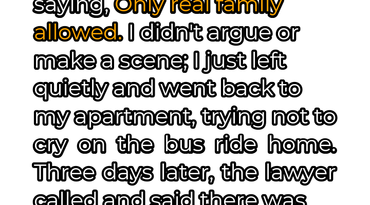 The fluorescent lights of the bus station hummed, casting a sickly yellow glow on the weary travelers waiting for their rides. I clutched my backpack tightly, trying to ignore the sympathetic glances from strangers. The funeral had been yesterday, a blur of forced smiles, hushed condolences, and the crushing weight of finality. It was over. He was gone. Fifteen years. Fifteen years he had been my dad. Not by blood, but by choice. He taught me to ride a bike, helped me with my homework, and always had a shoulder to cry on when my own biological father disappeared from my life. He was everything. But apparently, ‘everything’ wasn’t enough to qualify me as ‘family’ in the eyes of his biological children. Their words, sharp and dismissive, echoed in my head: “Only real family allowed.” They’d made sure I wasn’t part of the will reading, their entitlement a palpable force field.