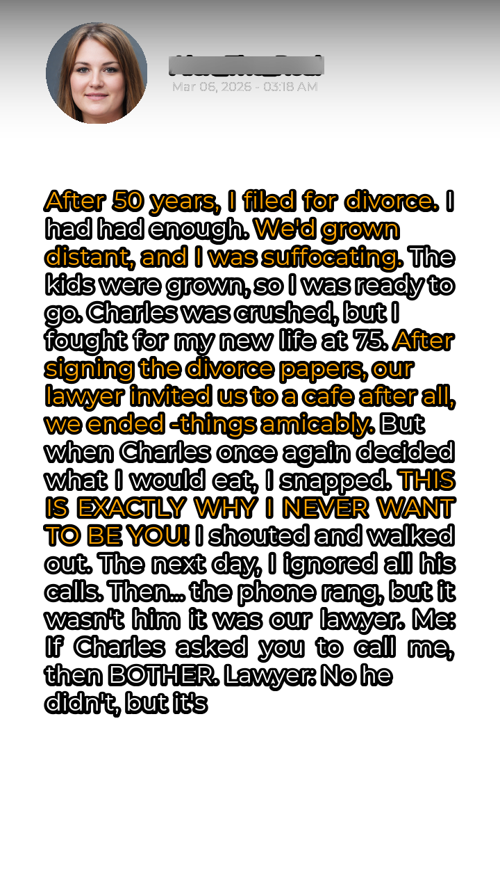 After fifty long years, the decision hung heavy in the air, a culmination of decades slowly eroding into discontent. I had finally filed for divorce. Enough was enough. The vibrant woman I once was had faded, buried beneath the weight of unspoken resentments and a stifling routine. We’d grown apart, not with a sudden rupture, but with the slow, agonizing creep of vines choking the life out of a once-blooming garden. The house, once filled with the boisterous laughter of children, now echoed with a silence that felt more like a tomb. The kids were grown, carving out their own lives, their visits becoming less frequent, their calls shorter. I was ready to embark on my own journey, to rediscover the woman I had lost somewhere along the way. Charles, bless his heart, was understandably crushed. He couldn’t comprehend my yearning for something more, my desperate need to break free from the gilded cage we had built together. At 75, I fought for my new life with a ferocity that surprised even myself.