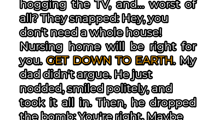 The truth unfurled slowly, a tapestry of selfishness and entitlement woven by my in-laws. They had disregarded my father’s routine, transforming his home into a personal playground. They devoured his carefully curated groceries, leaving him with scraps. They hogged the television, forcing him to retreat to his bedroom. But the most egregious offense, the one that cut deepest, was their blatant disregard for his dignity. During one of their many TV sessions, while channel-surfing, they paused, looked at my father, and said, “You know, you don’t really need all this space anymore. This house is too big for you. Maybe it’s time to consider a nursing home. It would be easier for everyone.”