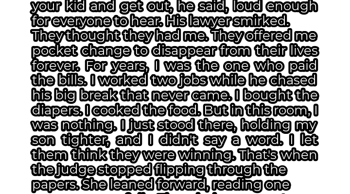 The courtroom air hung thick with tension, a palpable weight that pressed down on my shoulders. My son, barely five years old, whimpered softly, his small fingers clutching at my coat. Beside me stood Marcus, the man I had once envisioned growing old with, now a stranger radiating animosity. His lawyer, a shark in a tailored suit, smirked, radiating an almost sickening confidence. I felt utterly alone. The words he had hurled at me echoed in my mind, each syllable a fresh wound. \