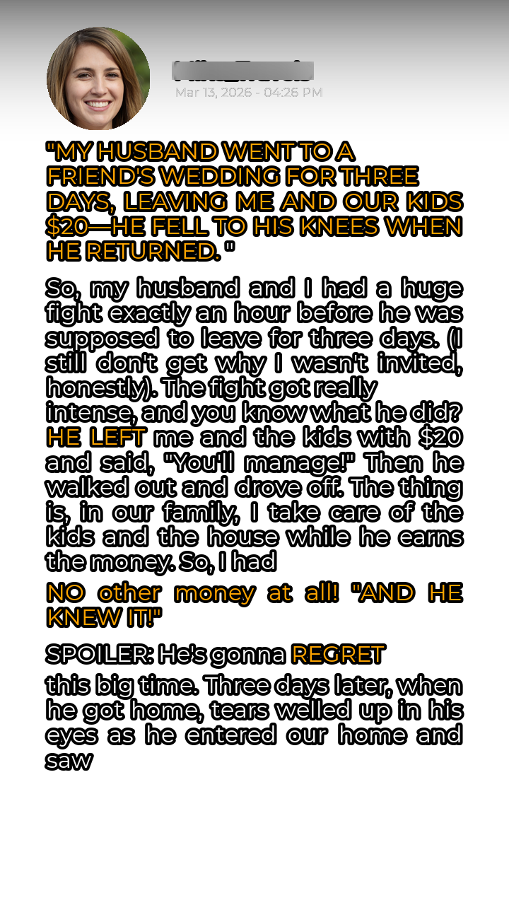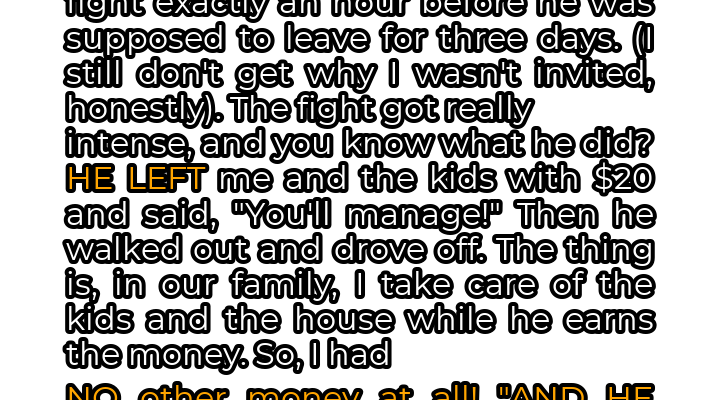 It all started with an argument, a truly monumental clash, just an hour before Mark was due to leave for his friend’s wedding. Three days. Three whole days he’d be gone, celebrating someone else’s happiness while I, his wife, was left behind. The reason for my exclusion remained a mystery, a festering wound alongside the growing resentment. The fight escalated quickly, fueled by unspoken frustrations and simmering anger. In the heat of the moment, Mark did the unthinkable. With a dismissive wave and a callous “You’ll manage,” he tossed a crumpled twenty-dollar bill onto the counter. Twenty dollars. That was it. That was all I had to feed and care for our two children for the next seventy-two hours. He knew perfectly well that I relied on him for financial support; I was a stay-at-home mother, dedicating my life to raising our kids and managing our household. I had no independent income, no safety net. His actions were not only infuriating but also incredibly irresponsible.