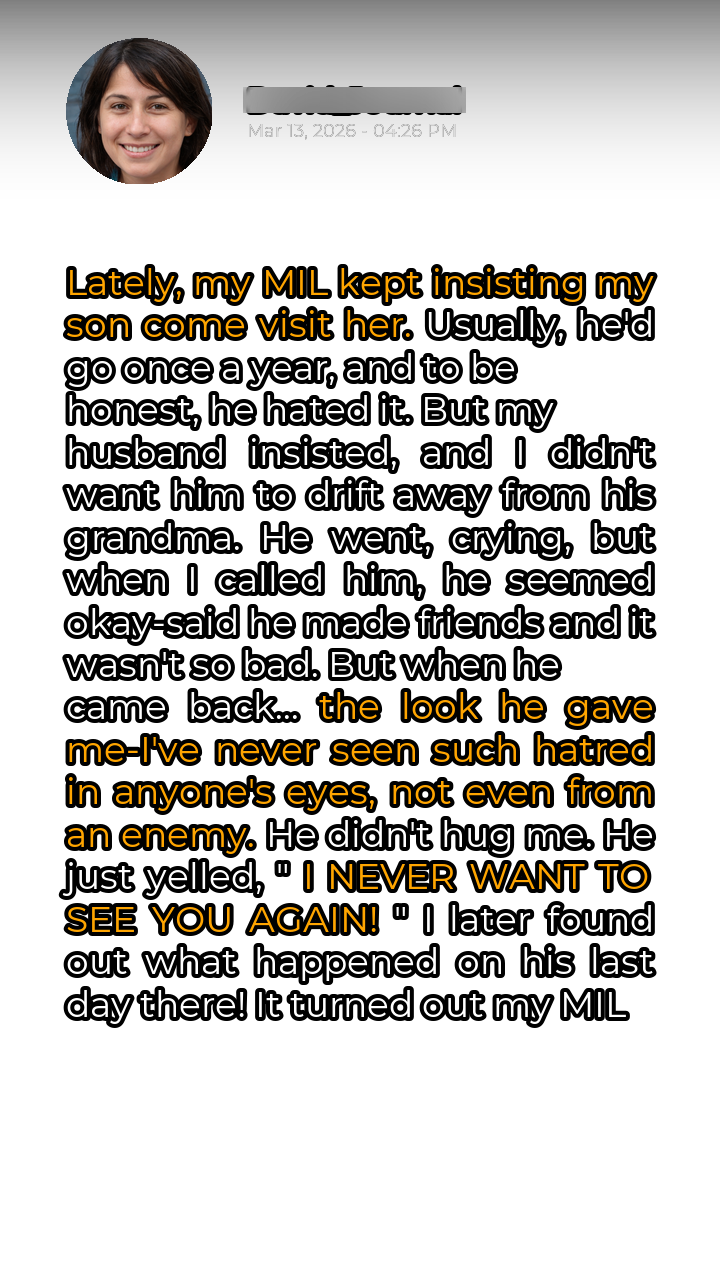 Days turned into weeks, and the rift between us remained. He refused to speak to me, avoiding eye contact and retreating to his room whenever I entered the house. My husband was equally baffled, unable to comprehend the sudden shift in our son’s behavior. Desperate for answers, I confronted my mother-in-law, demanding to know what had transpired during the visit. After much prodding, she finally revealed the truth: On the last day, she had told my son that he was adopted and that I never wanted him. She said she only took him in because she felt sorry for him.