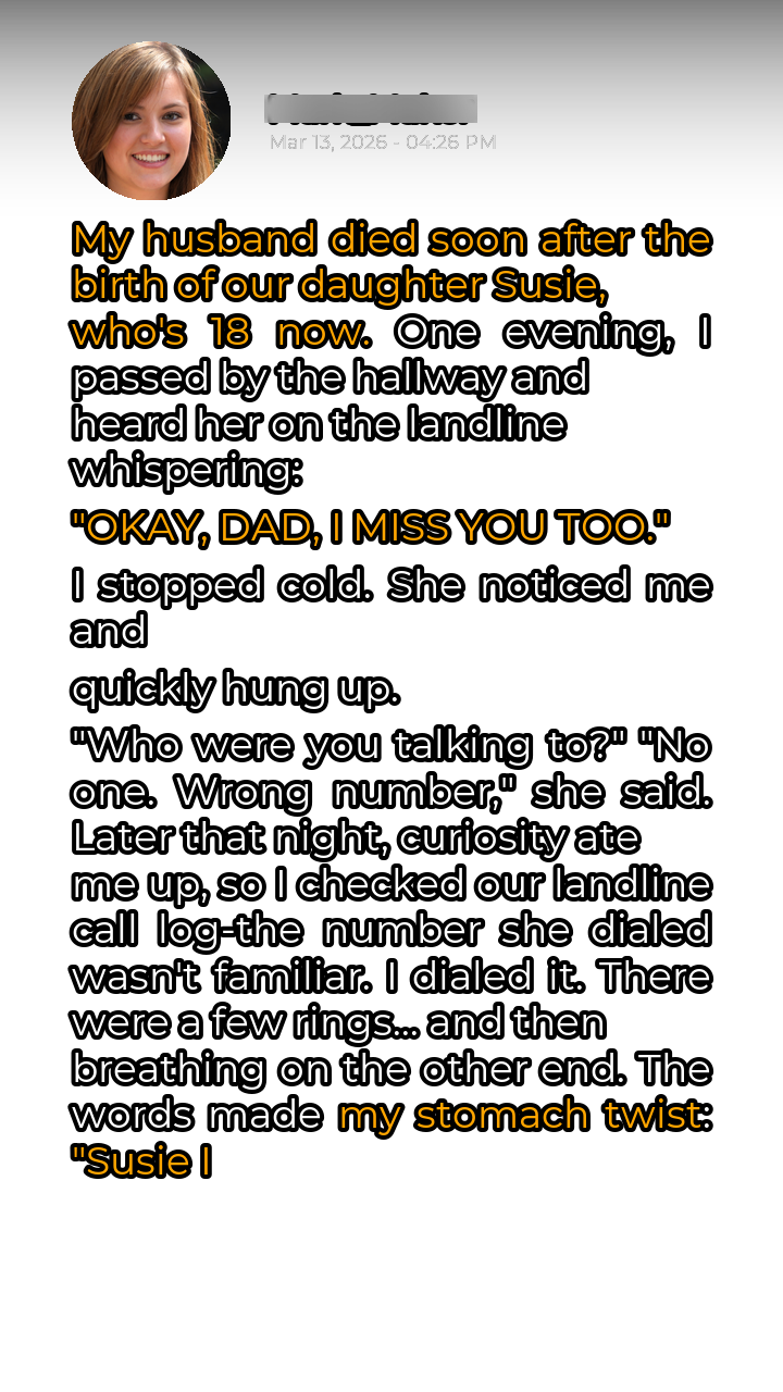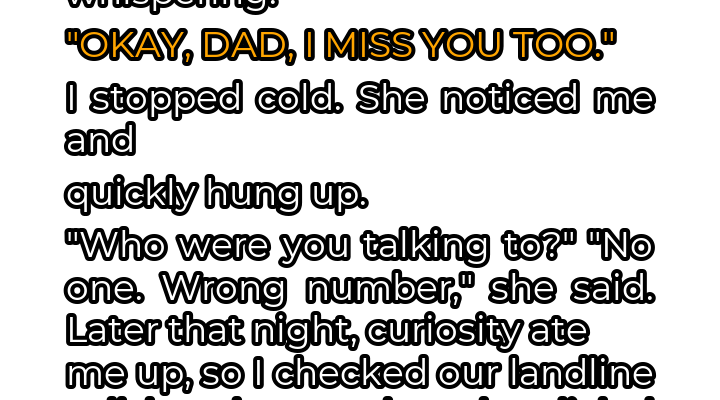 I heard Susie’s voice, a soft murmur that drifted from the landline receiver. It was a one-sided conversation, hushed and intimate. The words themselves were innocuous enough, but the context was deeply unsettling. “Okay, Dad, I miss you too,” she whispered, her voice laced with a longing that resonated deep within my soul.