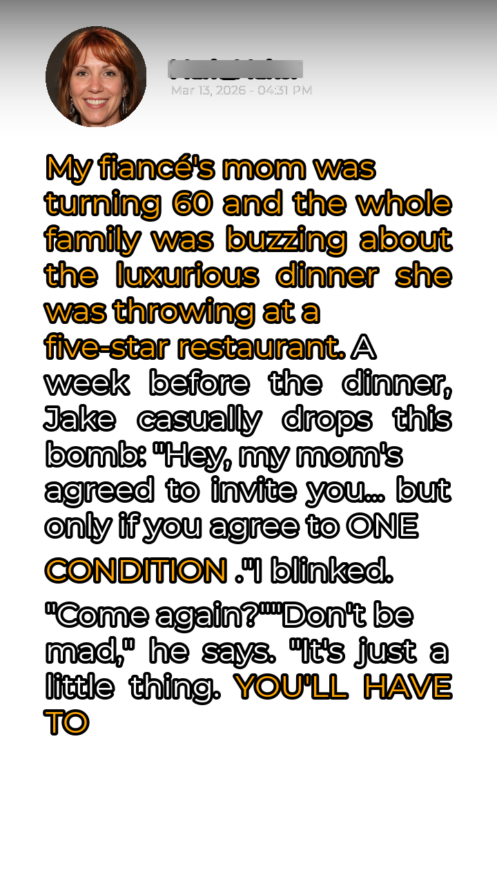 The invitation to Jake’s mother’s 60th birthday dinner felt more like a summons than a gesture of goodwill. The family had been abuzz for weeks about the lavish affair planned at the city’s most exclusive restaurant. It was supposed to be a milestone celebration, a chance for me to finally solidify my place within the family dynamic. Then Jake dropped the bomb. “Hey, my mom’s agreed to invite you,” he said casually, “but only if you agree to one condition.” My stomach plummeted. Conditions? For a birthday dinner? This didn’t sound good. Jake’s mother, Eleanor, was… a character. A woman of impeccable taste and even more eccentric demands.