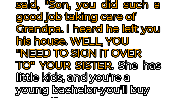 But that hope was quickly extinguished. “I heard he left you his house,” she continued, her tone becoming increasingly demanding. My heart sank. How could she even think about property at a time like this? Before I could even process the information, she dropped the bombshell. “Well, you need to sign it over to your sister.”