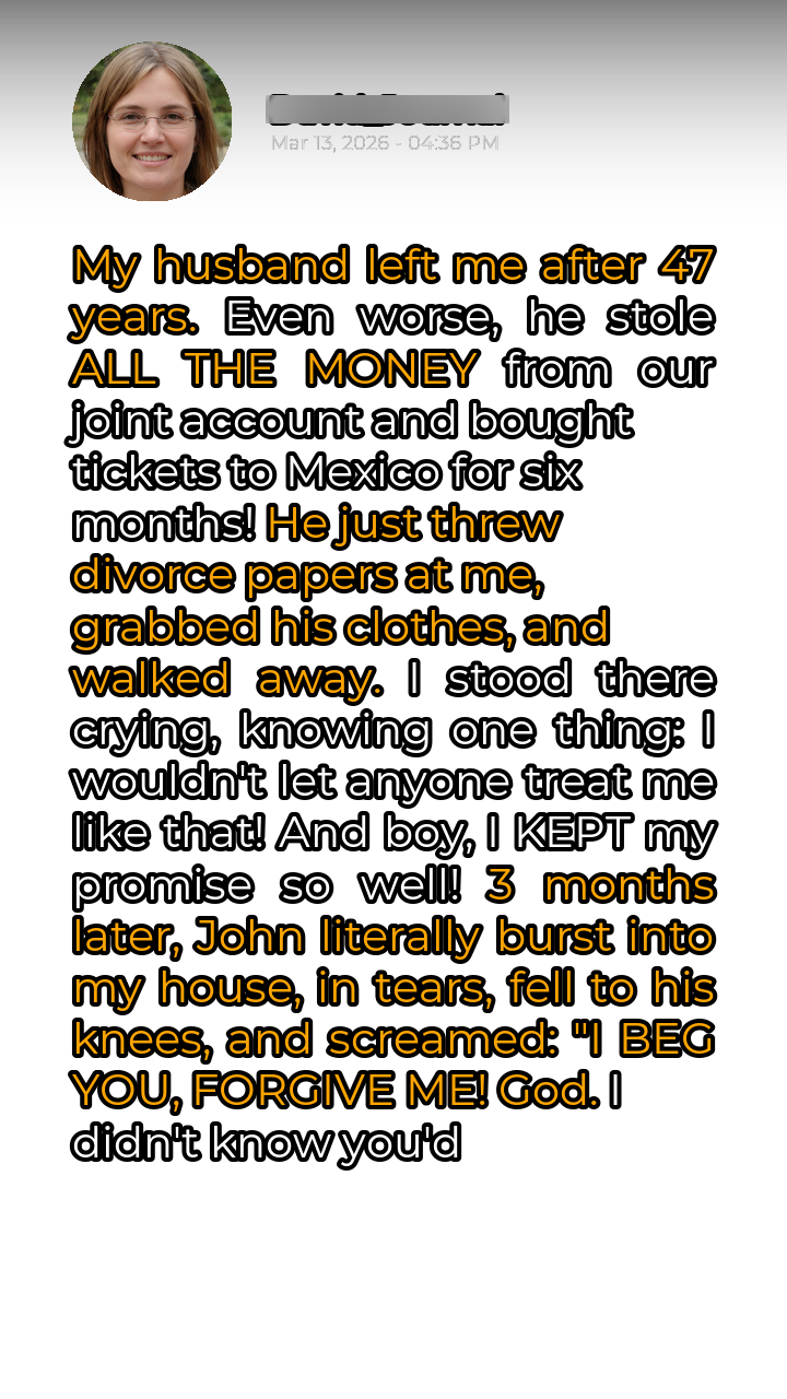 The silence in the house was deafening after John walked out. Forty-seven years, reduced to a handful of hastily signed papers and the slam of a door. The betrayal cut deep, but the theft of their life savings was a cruel twist of the knife. He’d vanished, leaving her with nothing but a mountain of bills and a shattered heart. Grief warred with a simmering anger. This wasn’t just about the money; it was about the years of trust, the shared dreams, all carelessly discarded. But amidst the despair, a spark ignited. She refused to be a victim. She wouldn’t let John’s actions define her. Instead, she decided to take control of her narrative and rebuild her life, stronger and more resilient than ever before. She started small, tackling the immediate financial crisis with a fierce determination. She sold off some of their unused possessions, carefully budgeting every penny.