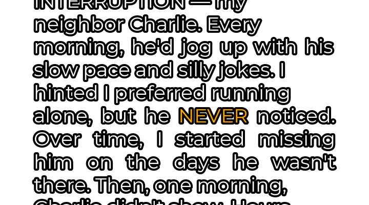Yet, as weeks turned into months, something strange began to happen. On the days when Charlie wasn’t there, a void would form in my morning. The silence seemed louder, the run less enjoyable. I found myself subconsciously scanning the street, half-expecting to see his familiar figure approaching. It was a bizarre realization – I, the champion of solitude, was actually missing my annoyingly persistent neighbor.