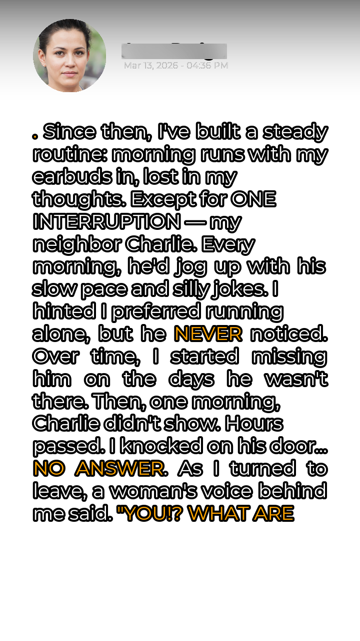 My mornings had become a sanctuary, a ritual of solitude and reflection. I would lace up my running shoes, slip in my earbuds, and lose myself in the rhythm of my feet hitting the pavement. The world outside faded away, replaced by the landscape of my thoughts. Since moving into this quiet neighborhood, I had cultivated this routine, cherishing the peace it brought. That peace, however, was regularly disrupted by one individual: my neighbor, Charlie. A man of boundless enthusiasm and questionable humor, Charlie had appointed himself my jogging companion. Every morning, without fail, he would appear, his gait a comical contrast to my own, his jokes groan-worthy but delivered with unwavering conviction. I tried subtle hints, polite excuses, anything to convey my preference for solitary runs, but Charlie remained blissfully unaware.
