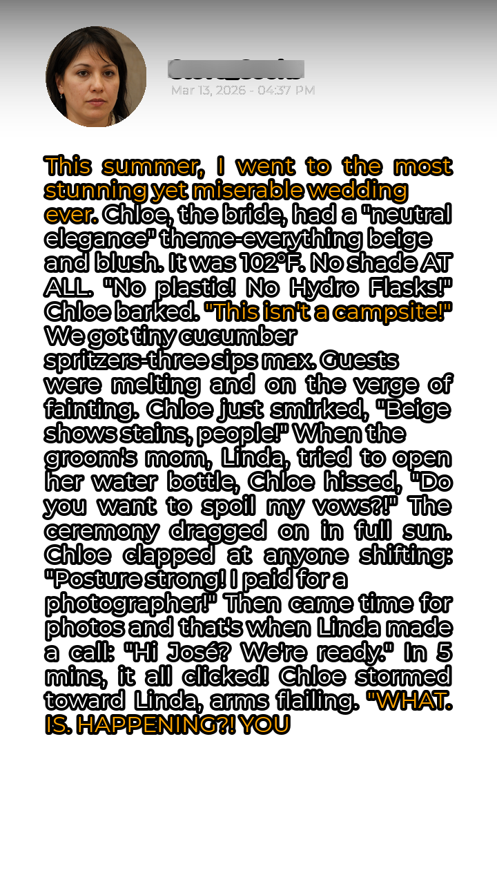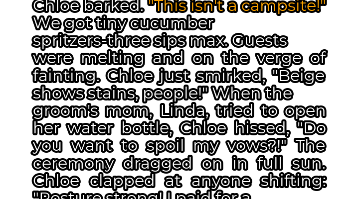 This summer, I witnessed a wedding that will forever be etched in my memory – not for its beauty, but for its sheer, unadulterated chaos. Chloe, the bride, envisioned a “neutral elegance” theme, a vision that translated into an all-beige-and-blush affair, devoid of any color or, apparently, basic human comfort. The setting was picturesque, yes, but the temperature soared to a scorching 102°F, with absolutely no shade in sight. From the moment we arrived, the rules were laid down with an iron fist. “No plastic! No Hydro Flasks!” Chloe barked, as if we were planning a camping trip instead of celebrating her nuptials. Hydration was limited to minuscule cucumber spritzers, barely enough to wet our parched throats. Guests were visibly wilting, beads of sweat glistening on foreheads, but Chloe remained unmoved, even smirking at one point, “Beige shows stains, people!”
