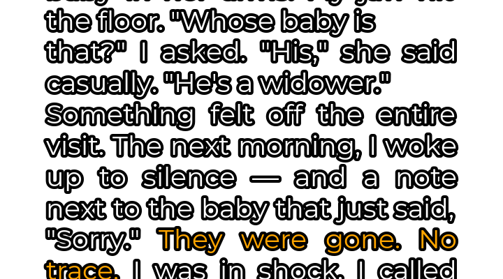 The next morning, I woke up to an unsettling silence. The guest room was empty. Emily and David were gone. My blood ran cold as I spotted a note lying next to the baby. One word: “Sorry.” My mind raced, trying to make sense of the situation. Why would they leave? Where would they go? And what was I supposed to do with this child?